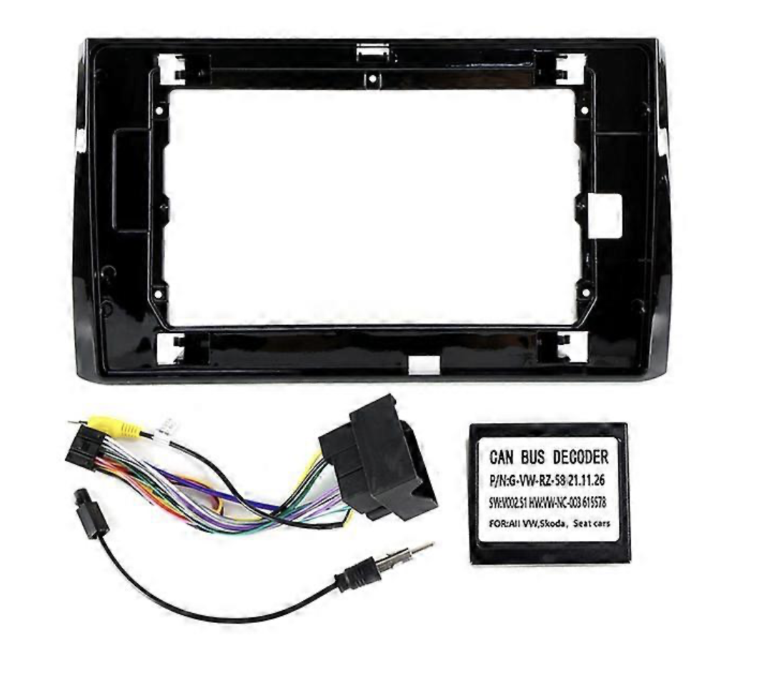 Redukční rámeček pro 10,1" autorádia s operačním systémem Android do vozidel Škoda Kodiaq (2016-2022). Za předpokladu použití vymezovacího rámečku lze instalovat také autorádio p úhlopříčce 9".