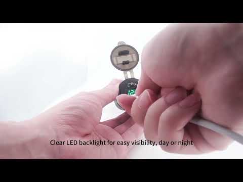 USB nabíječka do panelu, 2x QC3.0 + USB-C, s krytkou proti prachu a vlhkosti. Pomocí tlačítka lze přepínat zapnout/vypnout napájení.   Technické parametry: • napájecí napětí: 12 V - 24 V • funkce rychlonabíjecí QC 3.0 (Qualcomm Quick Charge 3.0) • výstup USB: 5 V - 12V (5 V / 3 A, 9 V / 2 A, 12 V / 1.5 A max.) • výstup USB-C PD (power delivery) • ø montážního otvoru: 29 mm - 30 mm • délka: 52 mm • ochranná krytka proti prachu a vlhkosti (lze sundat) • zelené LED podsvícení • materiál: hliník / …
