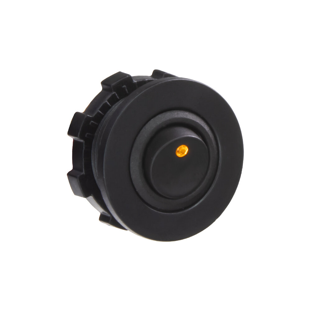 Spínač kolébkový kulatý 20A oranžová LED. Spíná kladné napětí mezi kontakty 1 a 2, na kontaktu 3 je kostra pro podsvícení.