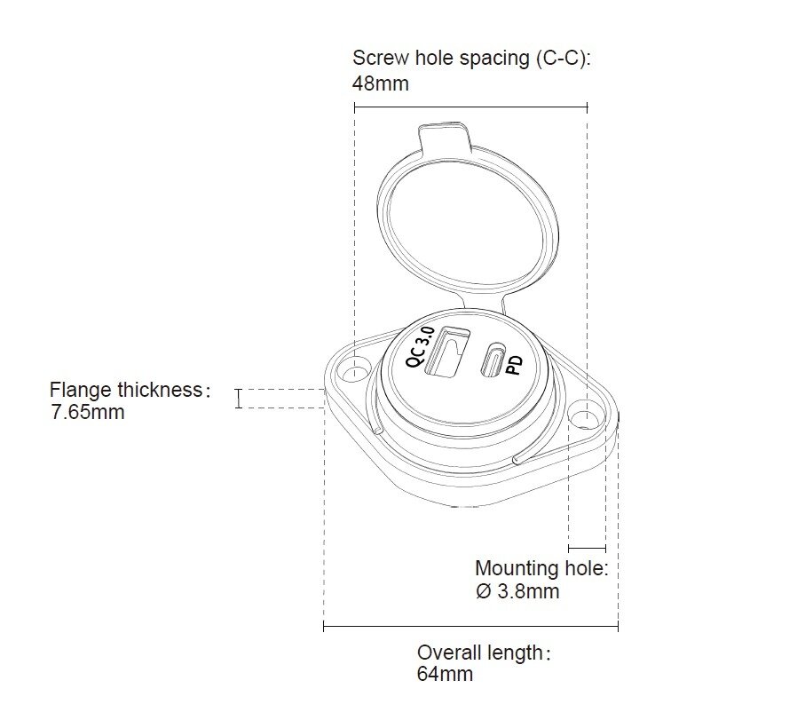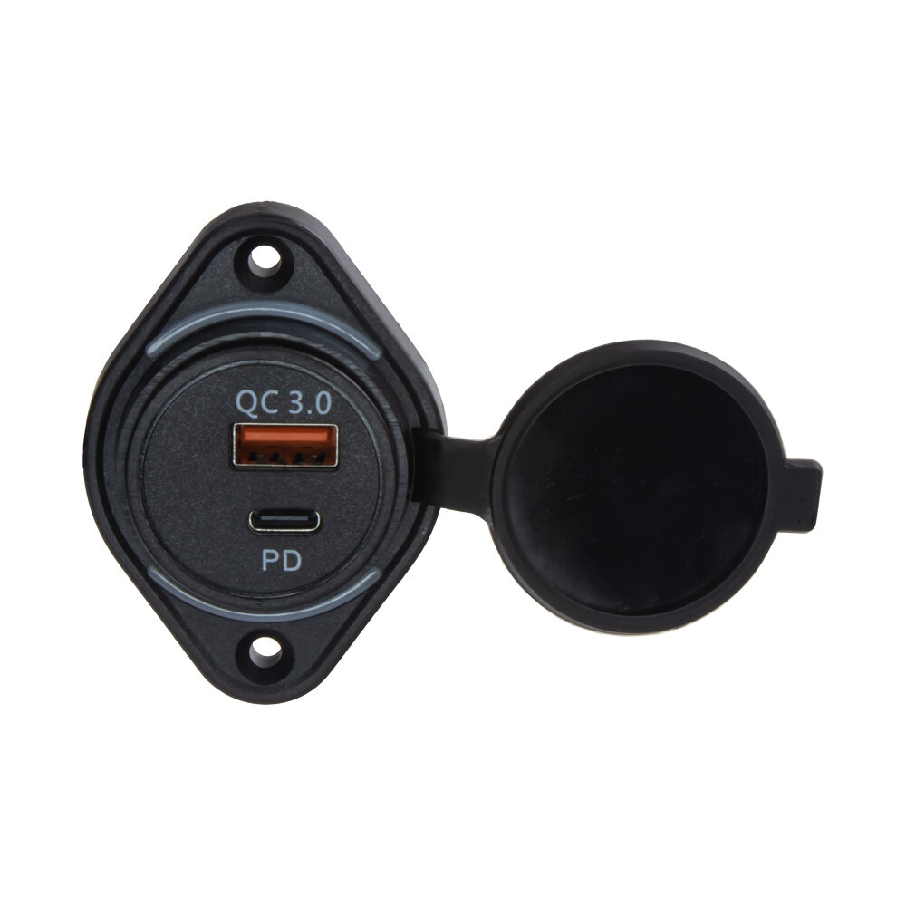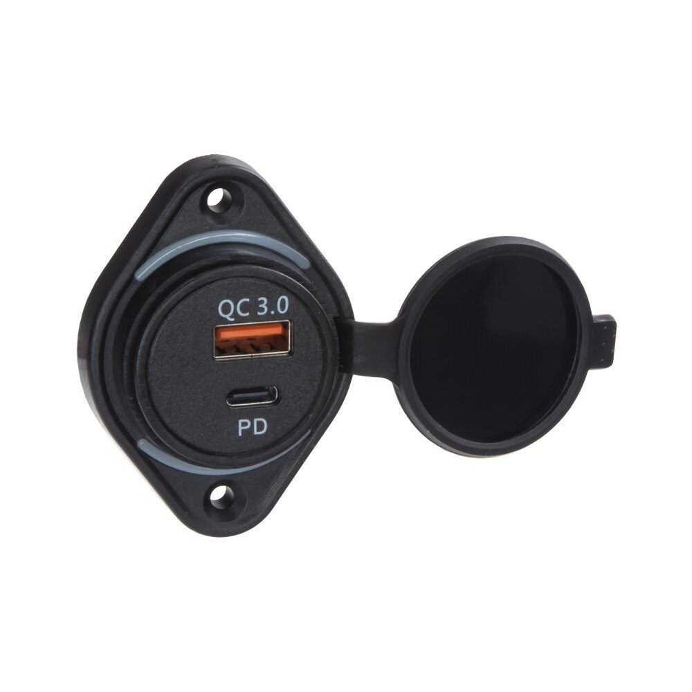USB QC3.0 + USB-C zásuvka 12/24V, montáž na povrch 34659W